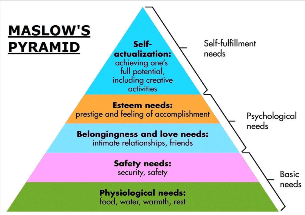 Maslow put it into perspective. We must obtain the needs at the base of the triangle before achieving our pinnacle needs.