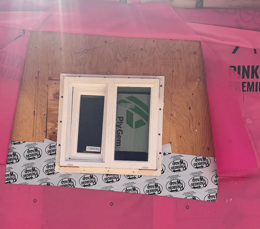 Once this is finished, I double the width of the tape and I add this flexible tape to the bottom corners of the window opening. This tape call for being applied to the wooden structure itself but each manufacture is different so be sure to follow their instruction. If there is any part that you are unsure of e mail them and get clarification. Run the instruction by your architect and engineer so they can approve them or make suggestions as to how to apply this system.